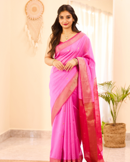 Cam Pink Color Premium Cotton Silk Saree With Classy Blouse and tassels
