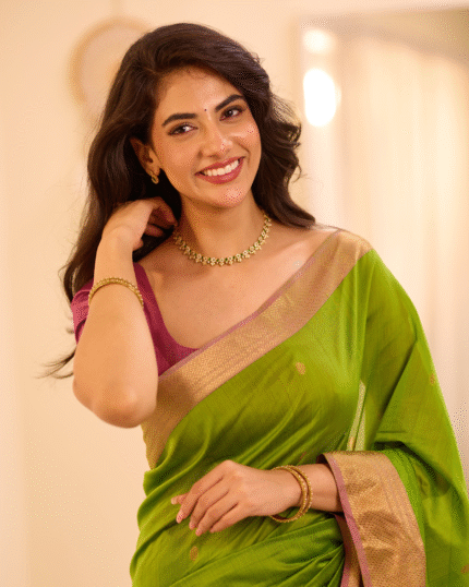 Green Color Premium Cotton Silk Saree With Classy Blouse and tassels