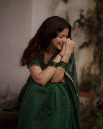 Green Color Cotton Silk Saree with Calssy Blouse and tassels - Navshtri Family