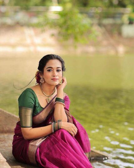Purple Color Premium Cotton Silk Saree With Classy Blouse and tassels - Navshtri Family