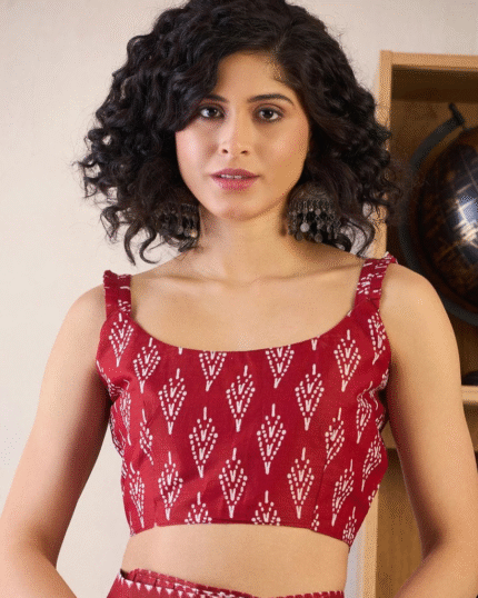 Red And Green Color Mulmul Cotton 1 – Minute Ready to Wear Saree with Pocket and Blouse Piece