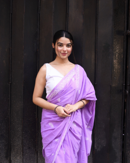 Purple Color Mulmul Cotton 1 – Minute Ready to Wear Saree with Pocket and Blouse Piece