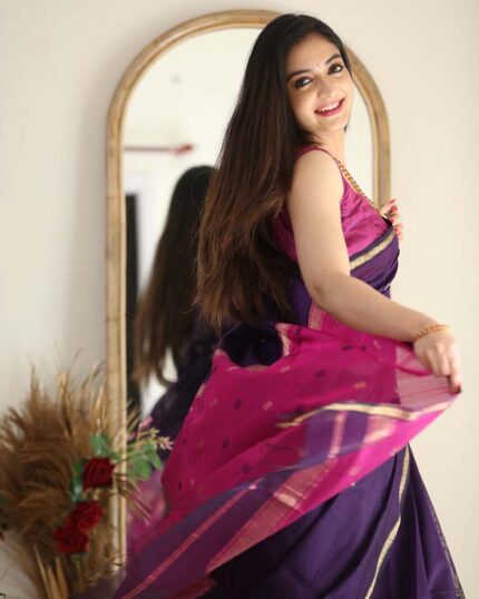 Purple Color Premium Cotton Silk Saree With Classy Blouse and tassels – Navshtri Family