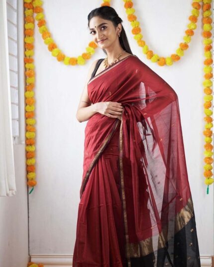 Red Color Premium Cotton Silk Saree With Classy Blouse and tassels – Navshtri Family