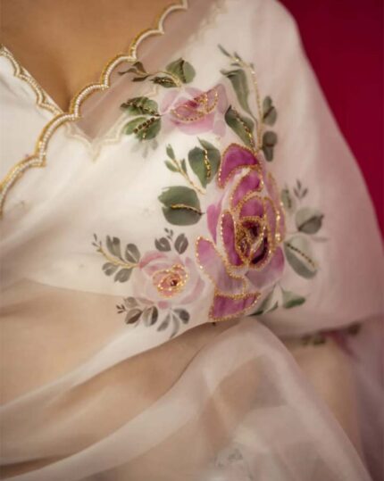 Aasmani Noor – Sky Blue Linen Saree with White Contrast Blouse – Navshtri Family