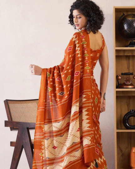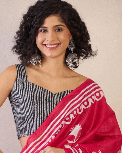 Aasmani Noor – Sky Blue Linen Saree with White Contrast Blouse – Navshtri Family
