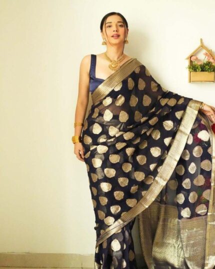 Black Color Ready to Wear Soft Banarasi Silk Saree with Golden Zari Work - Navshtri Family