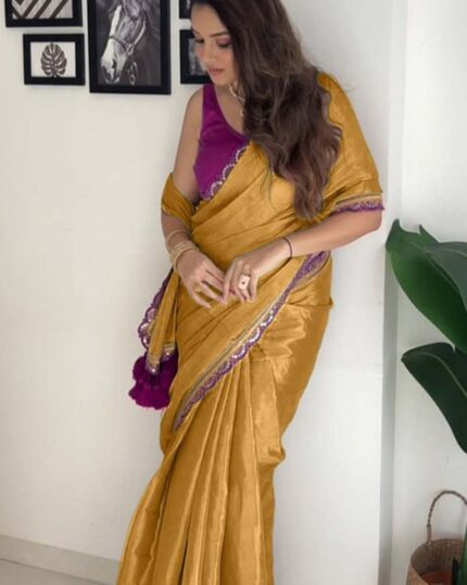 Green Color Soft Fendy Silk Saree with Handwork Lace Border & Stitched Blouse